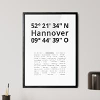 Zahlen, die die Welt bedeuten. Erstelle jetzt dein persönliches Koordinaten-Kunstwerk von deiner Lieblingsstadt. Entscheide selbst, ob Stadtteile, Straßen oder ganz eigene Texte abgedruckt werden. Perfekt als Geschenk zum Einzug oder für die eigenen vier Wände.