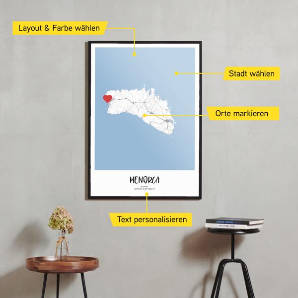 Hol Dir Deine Lieblingsinseln nach Hause. Sehnsucht nach Deinem letzten Spanien-Urlaub auf den Balearen? Mit unseren personalisierbaren Postern kannst Du Dir ein Stückchen Urlaub nach Hause holen. Einfach den Ort eingeben und nach deinen Wünschen personalisieren.