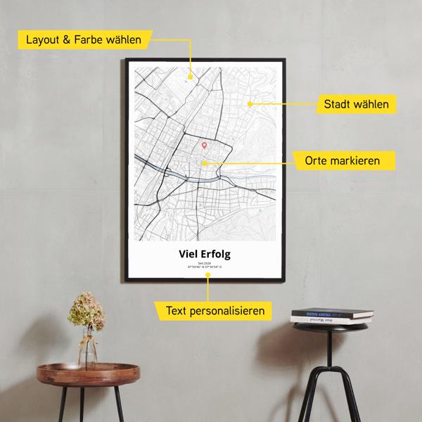 Ein personalisiertes Stadtkarten-Poster als Geschenk zur Firmengründung oder zum Bezug neuer Geschäftsräume ist eine stilvolle Art, diesen besonderen Anlass zu feiern. Es symbolisiert einen neuen Beginn und markiert den Ort des Geschehens auf elegante Weise. Ein maßgeschneidertes Erinnerungsstück, das jeden Unternehmer und Praxisinhaber begeistern wird. Einfach den Ort eingeben und nach deinen Wünschen personalisieren.