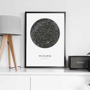 Feiere den Hochzeitstag mit einem personalisierten Sternenhimmel-Poster von Cartida, das den Himmel genau so zeigt, wie er am Tag deiner Hochzeit aussah. Dieses romantische Geschenk fängt den Zauber eures besonderen Tages ein und bietet eine ständige Erinnerung an das Versprechen ewiger Liebe. Mit der Möglichkeit, Ort, Datum und Zeit zu personalisieren, wird jedes Sternenbild-Poster zu einem einzigartigen Kunstwerk, das die Einzigartigkeit eurer Verbindung widerspiegelt.