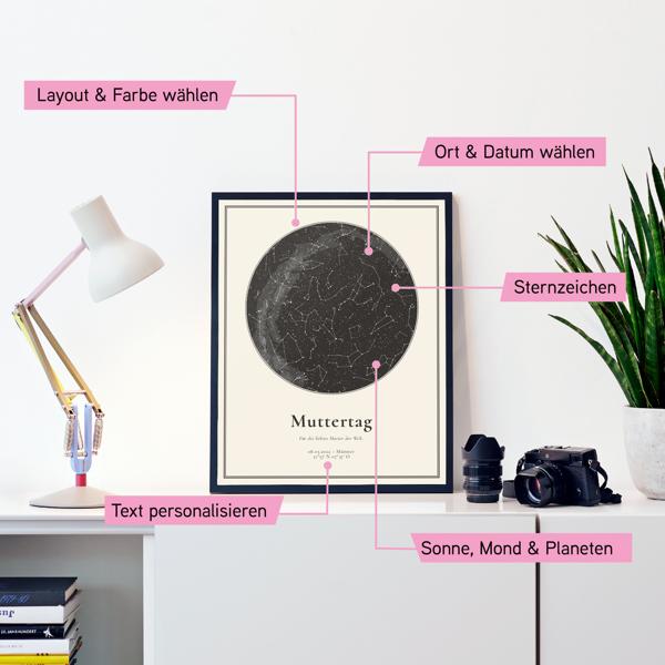 Sternenhimmel zum Muttertag war wunder­voll und einzigartig, genau wie deine Erinnerungen an diesen Tag. Verewige deine Erinnerungen mit einem personalisiertem Poster von diesem Moment.