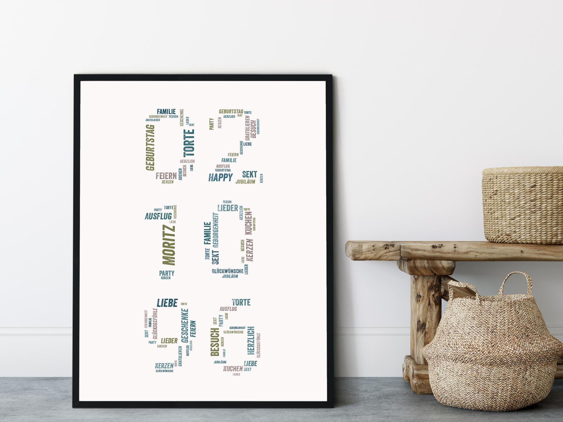 Verschenke zum Geburtstag persönliche Worte mit einem personalisierten Textkunst-Poster von Cartida. Diese einzigartigen Poster ermöglicht es, eigene Wörter und Glückwünsche in einer persönlichen Komposition zu verewigen. Ideal für jemand Besonderen, um Liebe, Freundschaft und besondere Erinnerungen auf kreative Weise auszudrücken. Jedes Wort trägt dabei zur Gestaltung eines persönlichen Kunstwerks bei, das Wärme und Individualität ausstrahlt.