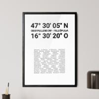 Zahlen, die die Welt bedeuten. Erstelle jetzt dein persönliches Koordinaten-Kunstwerk von deiner Lieblingsstadt. Entscheide selbst, ob Stadtteile, Straßen oder ganz eigene Texte abgedruckt werden. Perfekt als Geschenk zum Einzug oder für die eigenen vier Wände.