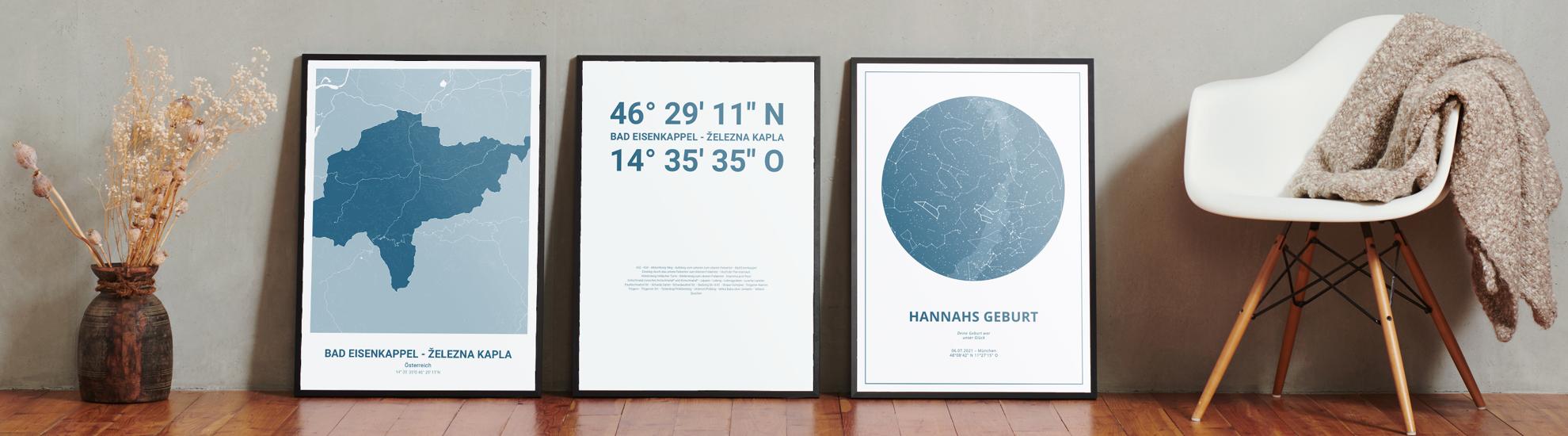 Wähle Farben und Layouts, die perfekt zu dir passen. Ob als klassische Karte in schwarz-weiß oder in modernen Farben. Bei Cartida kannst du ein Design in deinen Lieblingsfarben wählen. Erstelle eine Variante von Bad Eisenkappel - Železna Kapla, die perfekt zu dir und deiner Wohnung passt.