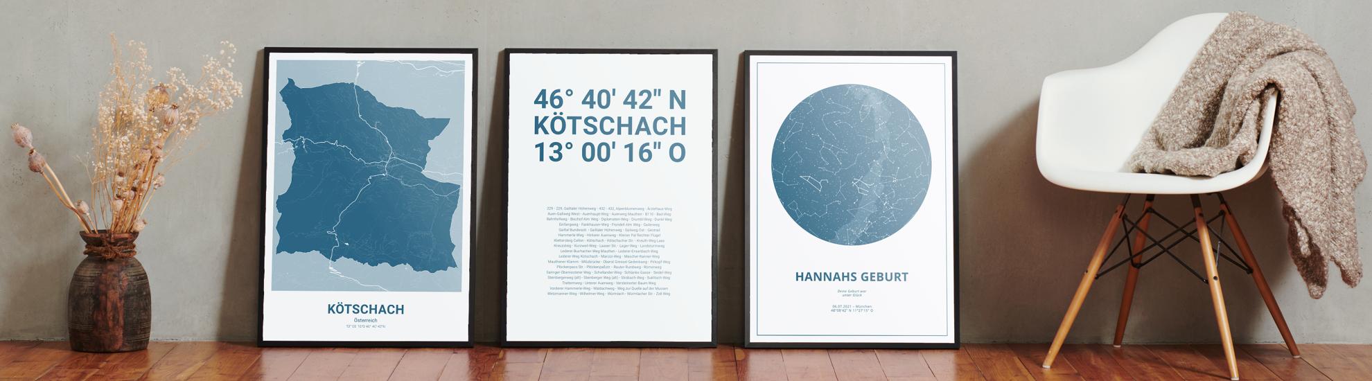 Wähle Farben und Layouts, die perfekt zu dir passen. Ob als klassische Karte in schwarz-weiß oder in modernen Farben. Bei Cartida kannst du ein Design in deinen Lieblingsfarben wählen. Erstelle eine Variante von Kötschach, die perfekt zu dir und deiner Wohnung passt.