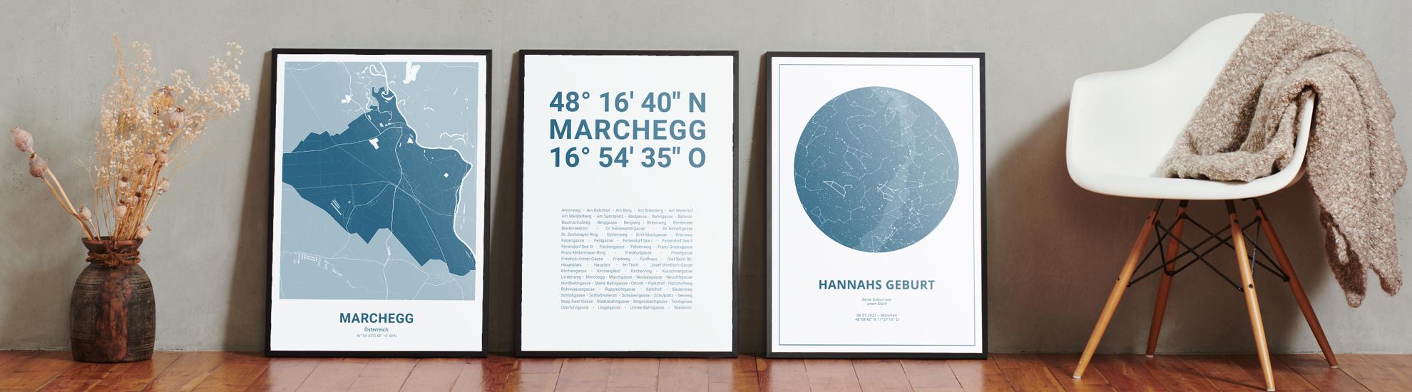 Wähle Farben und Layouts, die perfekt zu dir passen. Ob als klassische Karte in schwarz-weiß oder in modernen Farben. Bei Cartida kannst du ein Design in deinen Lieblingsfarben wählen. Erstelle eine Variante von Marchegg, die perfekt zu dir und deiner Wohnung passt.