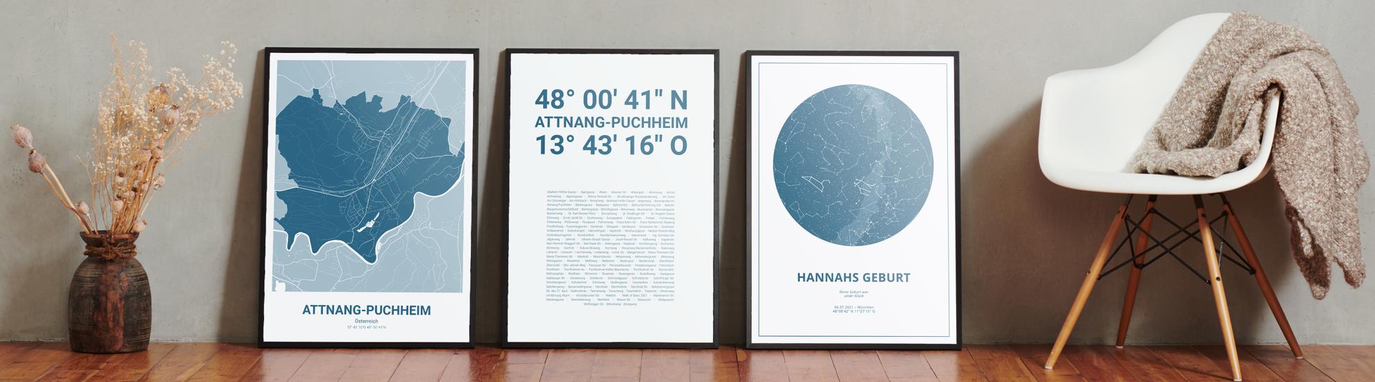 Wähle Farben und Layouts, die perfekt zu dir passen. Ob als klassische Karte in schwarz-weiß oder in modernen Farben. Bei Cartida kannst du ein Design in deinen Lieblingsfarben wählen. Erstelle eine Variante von Attnang-Puchheim, die perfekt zu dir und deiner Wohnung passt.