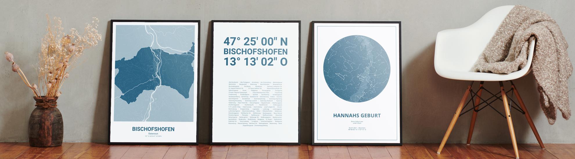 Wähle Farben und Layouts, die perfekt zu dir passen. Ob als klassische Karte in schwarz-weiß oder in modernen Farben. Bei Cartida kannst du ein Design in deinen Lieblingsfarben wählen. Erstelle eine Variante von Bischofshofen, die perfekt zu dir und deiner Wohnung passt.
