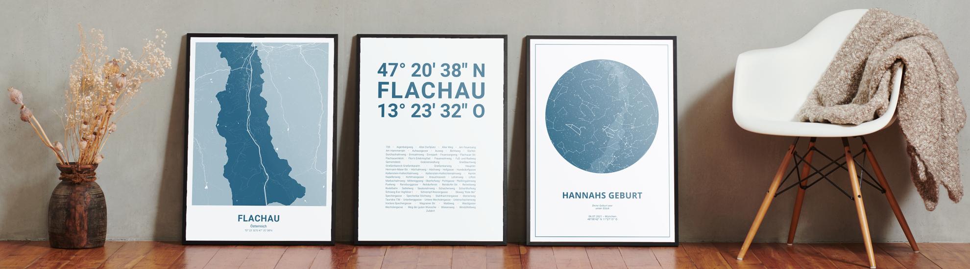 Wähle Farben und Layouts, die perfekt zu dir passen. Ob als klassische Karte in schwarz-weiß oder in modernen Farben. Bei Cartida kannst du ein Design in deinen Lieblingsfarben wählen. Erstelle eine Variante von Flachau, die perfekt zu dir und deiner Wohnung passt.