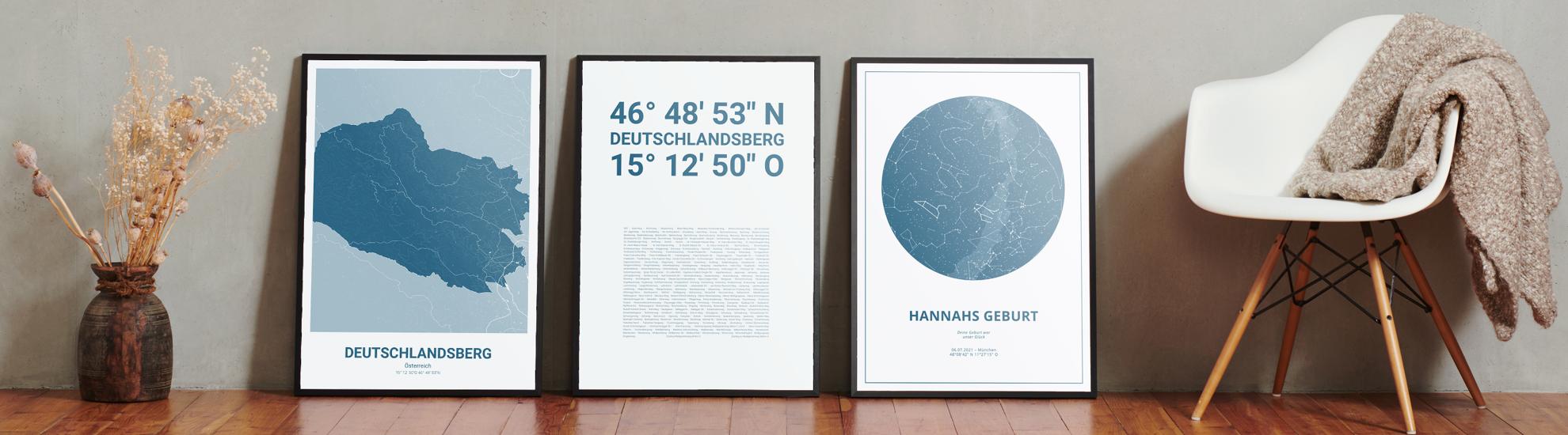 Wähle Farben und Layouts, die perfekt zu dir passen. Ob als klassische Karte in schwarz-weiß oder in modernen Farben. Bei Cartida kannst du ein Design in deinen Lieblingsfarben wählen. Erstelle eine Variante von Deutschlandsberg, die perfekt zu dir und deiner Wohnung passt.