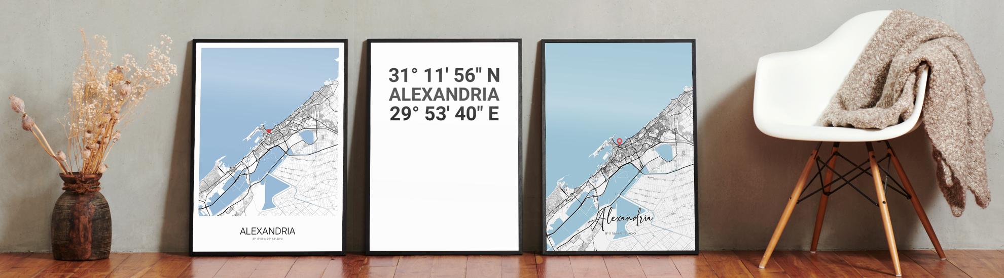 Bilder, die Geschichten erzählen über Reisen, Liebe und Erinnerungen. Wir bei Cartida haben deine Stadtkarte von Alexandria. Dargestellt als Schwarzplan mit Gebäuden oder als Minimal City Map mit filigranen Straßennetz.