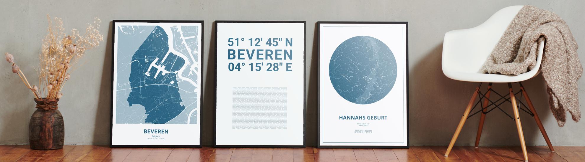 Wähle Farben und Layouts, die perfekt zu dir passen. Ob als klassische Karte in schwarz-weiß oder in modernen Farben. Bei Cartida kannst du ein Design in deinen Lieblingsfarben wählen. Erstelle eine Variante von Beveren, die perfekt zu dir und deiner Wohnung passt.