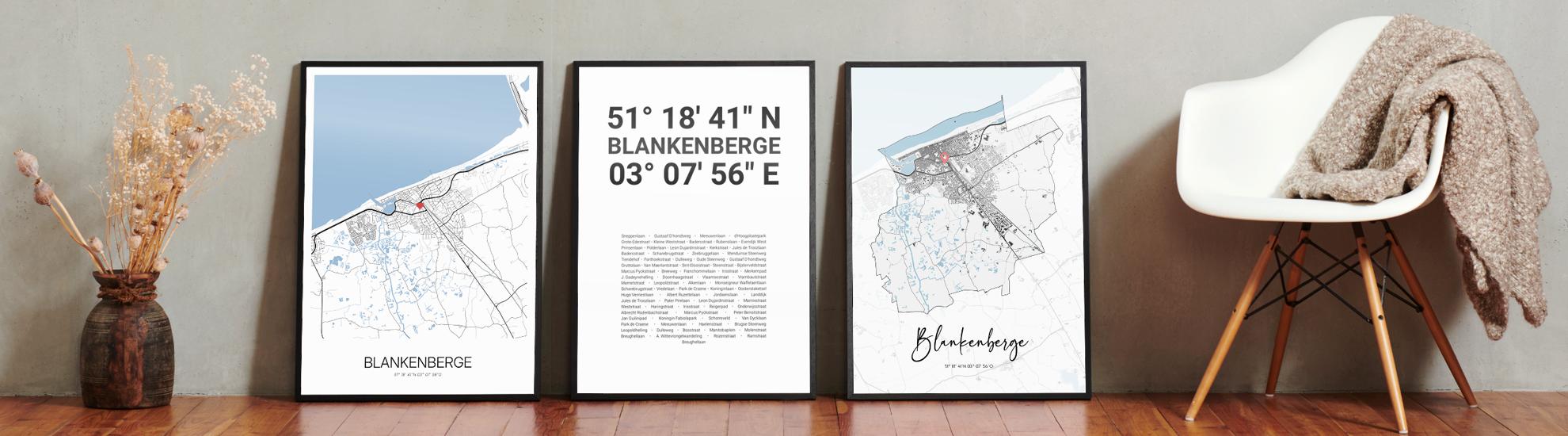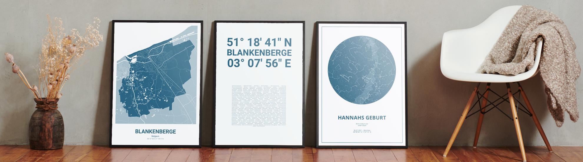 Wähle Farben und Layouts, die perfekt zu dir passen. Ob als klassische Karte in schwarz-weiß oder in modernen Farben. Bei Cartida kannst du ein Design in deinen Lieblingsfarben wählen. Erstelle eine Variante von Blankenberge, die perfekt zu dir und deiner Wohnung passt.