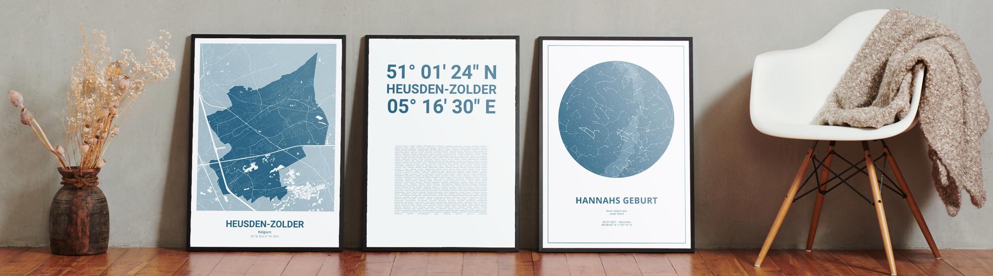 Wähle Farben und Layouts, die perfekt zu dir passen. Ob als klassische Karte in schwarz-weiß oder in modernen Farben. Bei Cartida kannst du ein Design in deinen Lieblingsfarben wählen. Erstelle eine Variante von Heusden-Zolder, die perfekt zu dir und deiner Wohnung passt.