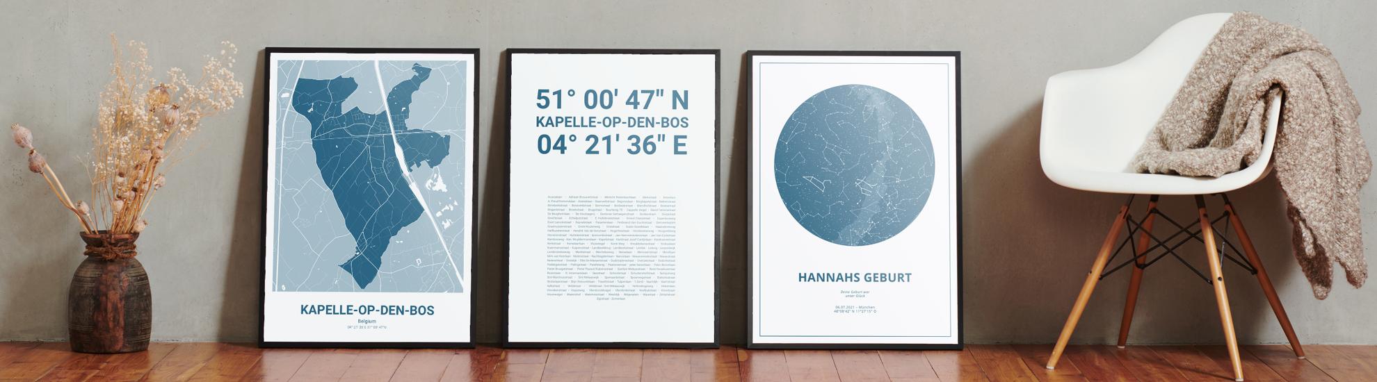 Wähle Farben und Layouts, die perfekt zu dir passen. Ob als klassische Karte in schwarz-weiß oder in modernen Farben. Bei Cartida kannst du ein Design in deinen Lieblingsfarben wählen. Erstelle eine Variante von Kapelle-op-den-Bos, die perfekt zu dir und deiner Wohnung passt.