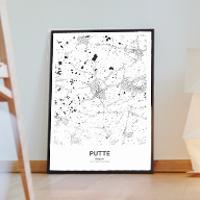Bilder, die Geschichten erzählen über Reisen, Liebe und Erinnerungen. Wir bei Cartida haben deine Stadtkarte von Putte in Vlaanderen, Belgien. Dargestellt als Schwarzplan mit Gebäuden oder als Minimal City Map mit filigranen Straßennetz.