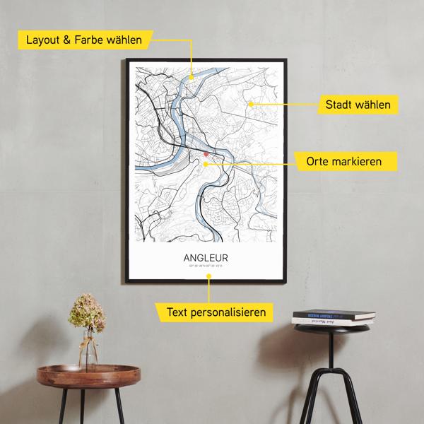 Wähle Farben und Layouts, die perfekt zu dir passen. Ob als klassische Karte in schwarz-weiß oder in modernen Farben. Bei Cartida kannst du ein Design in deinen Lieblingsfarben wählen. Erstelle eine Variante von Angleur, die perfekt zu dir und deiner Wohnung passt.