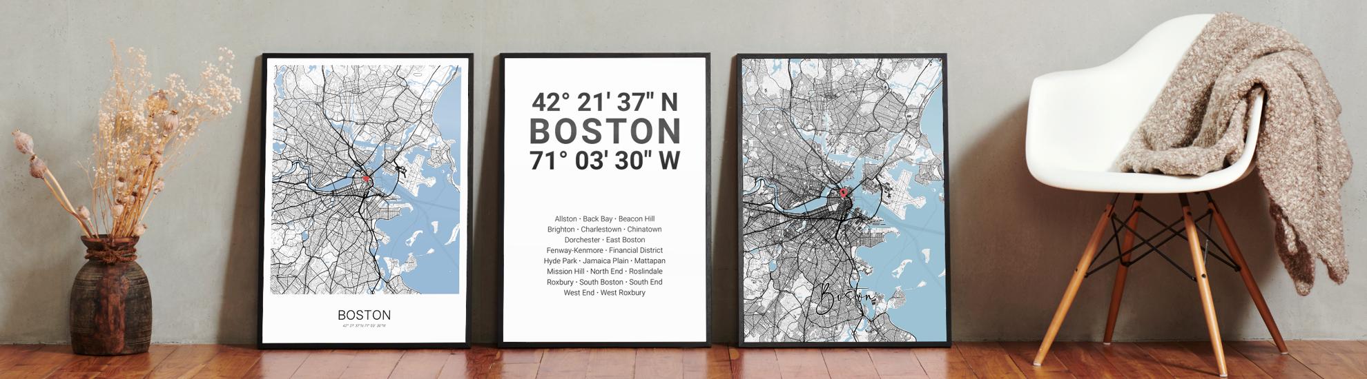 Bilder, die Geschichten erzählen über Reisen, Liebe und Erinnerungen. Wir bei Cartida haben deine Stadtkarte von Boston. Dargestellt als Schwarzplan mit Gebäuden oder als Minimal City Map mit filigranen Straßennetz.
