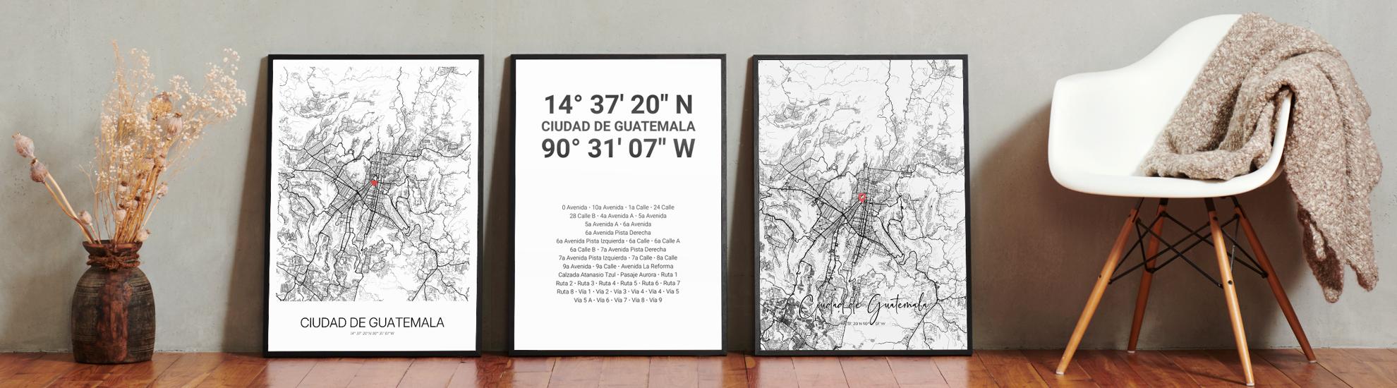Bilder, die Geschichten erzählen über Reisen, Liebe und Erinnerungen. Wir bei Cartida haben deine Stadtkarte von Ciudad de Guatemala. Dargestellt als Schwarzplan mit Gebäuden oder als Minimal City Map mit filigranen Straßennetz.