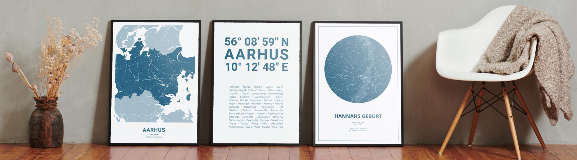 Wähle Farben und Layouts, die perfekt zu dir passen. Ob als klassische Karte in schwarz-weiß oder in modernen Farben. Bei Cartida kannst du ein Design in deinen Lieblingsfarben wählen. Erstelle eine Variante von Aarhus, die perfekt zu dir und deiner Wohnung passt.