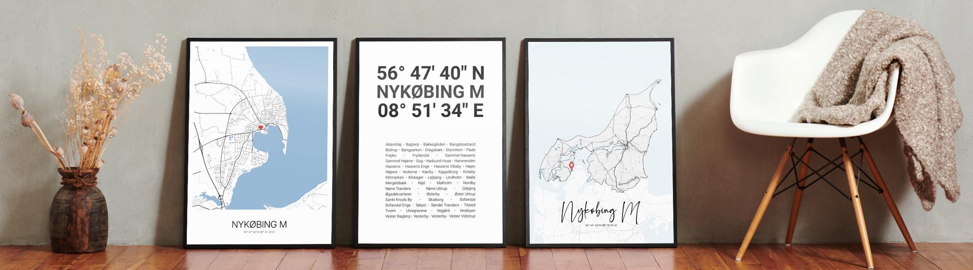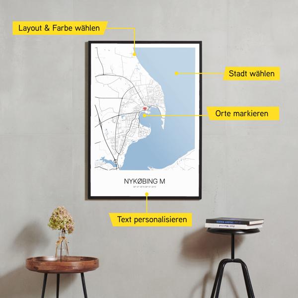 Wähle Farben und Layouts, die perfekt zu dir passen. Ob als klassische Karte in schwarz-weiß oder in modernen Farben. Bei Cartida kannst du ein Design in deinen Lieblingsfarben wählen. Erstelle eine Variante von Nykøbing M, die perfekt zu dir und deiner Wohnung passt.