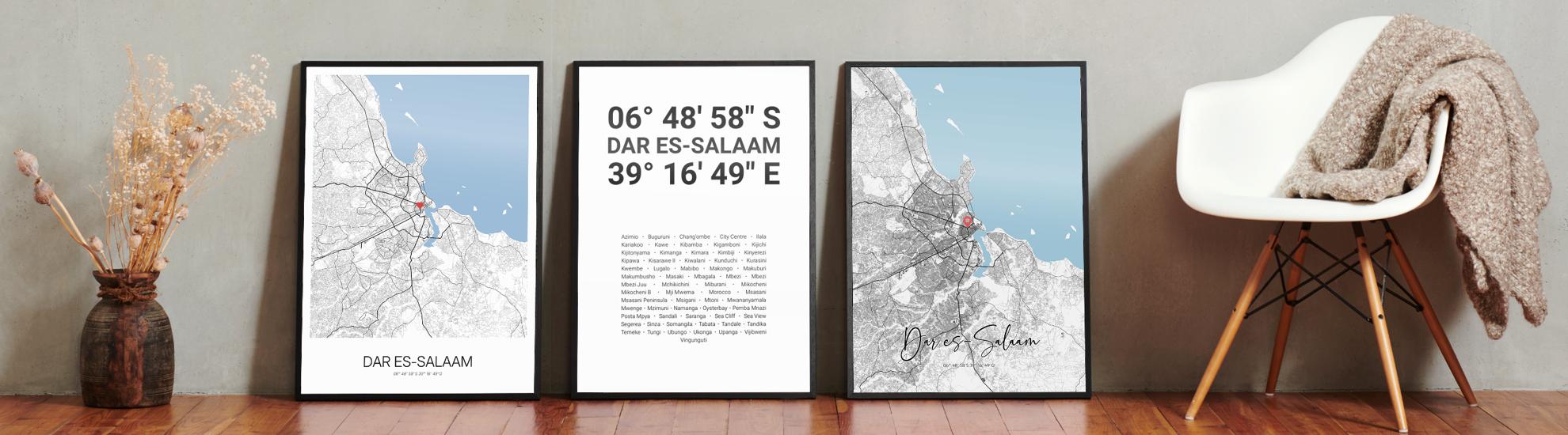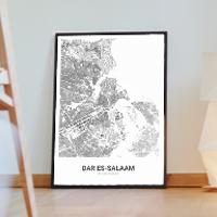 Bilder, die Geschichten erzählen über Reisen, Liebe und Erinnerungen. Wir bei Cartida haben deine Stadtkarte von Dar es-Salaam. Dargestellt als Schwarzplan mit Gebäuden oder als Minimal City Map mit filigranen Straßennetz.