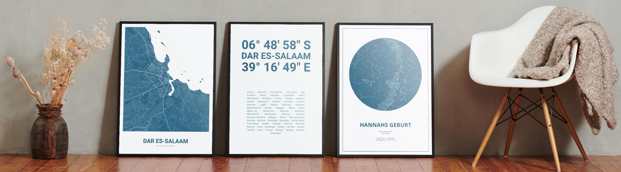 Zahlen, die die Welt bedeuten. Erstelle jetzt dein persönliches Koordinaten-Kunstwerk von deiner Lieblingsstadt. Entscheide selbst, ob Stadtteile, Straßen oder ganz eigene Texte abgedruckt werden. Perfekt als Geschenk zum Einzug oder für die eigenen vier Wände.