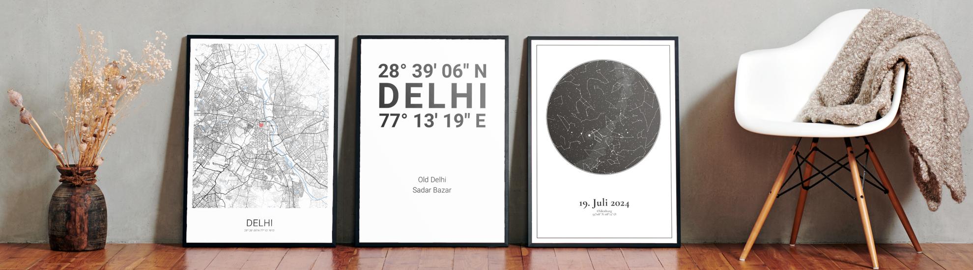 Wähle Farben und Layouts, die perfekt zu dir passen. Ob als klassische Karte in schwarz-weiß oder in modernen Farben. Bei Cartida kannst du ein Design in deinen Lieblingsfarben wählen. Erstelle eine Variante von Delhi, die perfekt zu dir und deiner Wohnung passt.