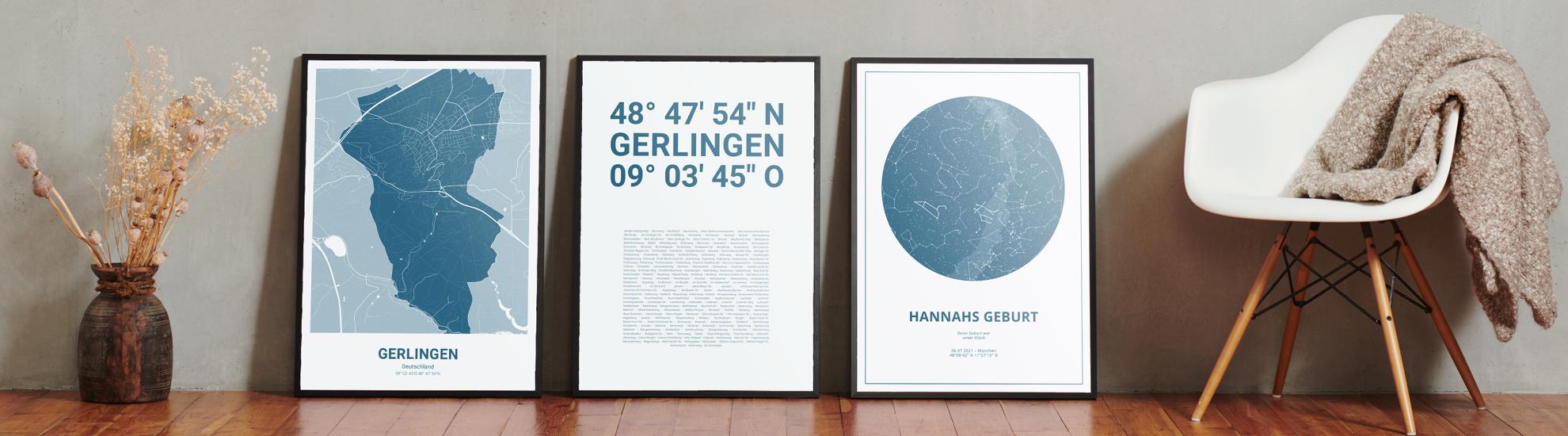 Wähle Farben und Layouts, die perfekt zu dir passen. Ob als klassische Karte in schwarz-weiß oder in modernen Farben. Bei Cartida kannst du ein Design in deinen Lieblingsfarben wählen. Erstelle eine Variante von Gerlingen, die perfekt zu dir und deiner Wohnung passt.
