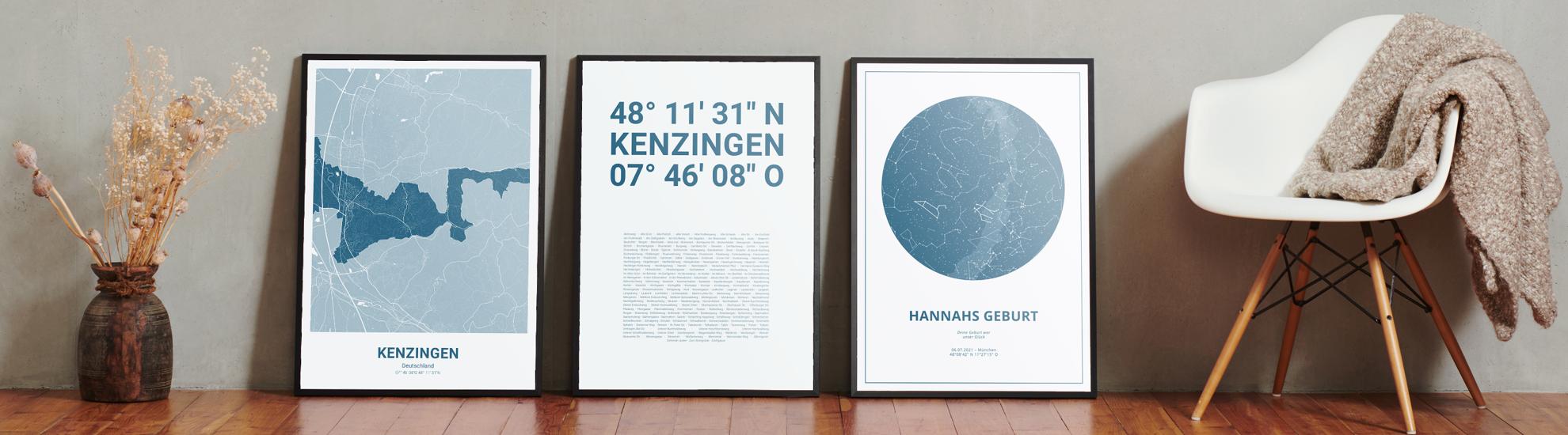 Wähle Farben und Layouts, die perfekt zu dir passen. Ob als klassische Karte in schwarz-weiß oder in modernen Farben. Bei Cartida kannst du ein Design in deinen Lieblingsfarben wählen. Erstelle eine Variante von Kenzingen, die perfekt zu dir und deiner Wohnung passt.