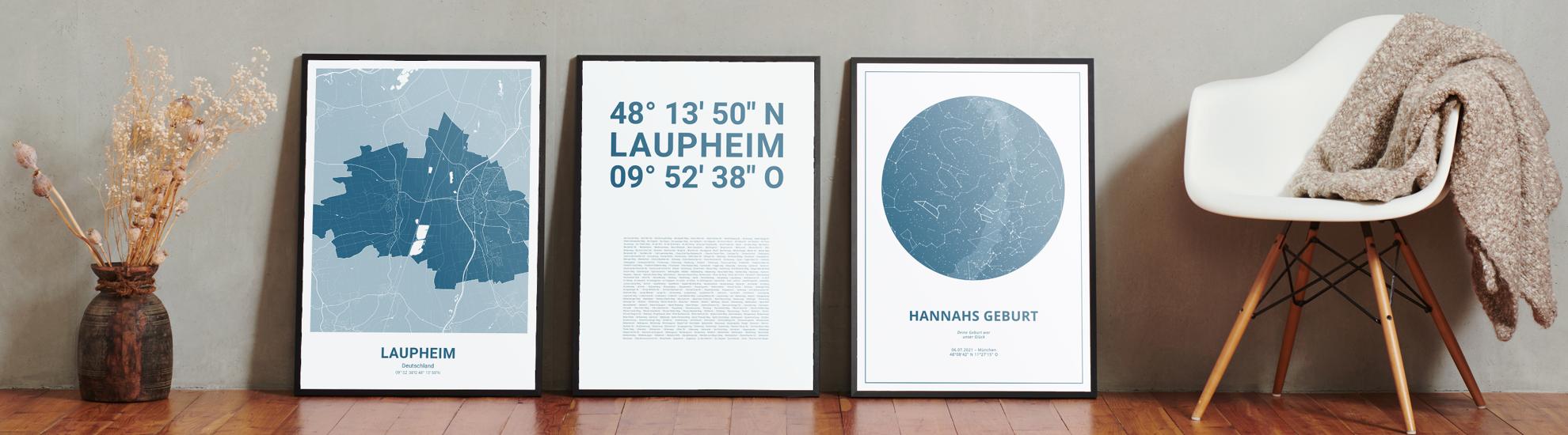 Wähle Farben und Layouts, die perfekt zu dir passen. Ob als klassische Karte in schwarz-weiß oder in modernen Farben. Bei Cartida kannst du ein Design in deinen Lieblingsfarben wählen. Erstelle eine Variante von Laupheim, die perfekt zu dir und deiner Wohnung passt.