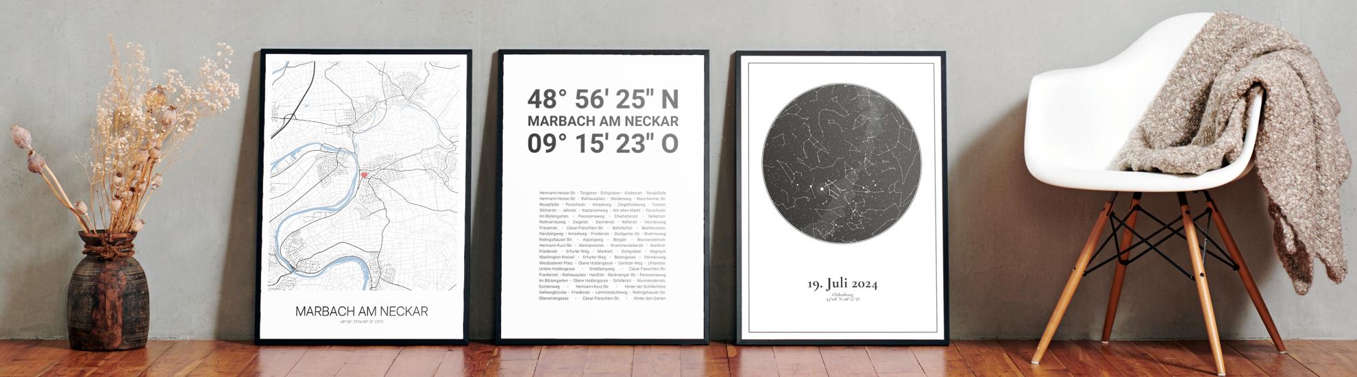 Wähle Farben und Layouts, die perfekt zu dir passen. Ob als klassische Karte in schwarz-weiß oder in modernen Farben. Bei Cartida kannst du ein Design in deinen Lieblingsfarben wählen. Erstelle eine Variante von Marbach am Neckar, die perfekt zu dir und deiner Wohnung passt.