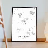 Wähle Farben und Layouts, die perfekt zu dir passen. Ob als klassische Karte in schwarz-weiß oder in modernen Farben. Bei Cartida kannst du ein Design in deinen Lieblingsfarben wählen. Erstelle eine Variante von Weil der Stadt, die perfekt zu dir und deiner Wohnung passt.