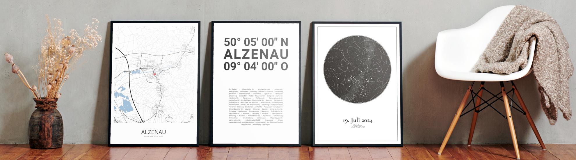 Wähle Farben und Layouts, die perfekt zu dir passen. Ob als klassische Karte in schwarz-weiß oder in modernen Farben. Bei Cartida kannst du ein Design in deinen Lieblingsfarben wählen. Erstelle eine Variante von Alzenau, die perfekt zu dir und deiner Wohnung passt.