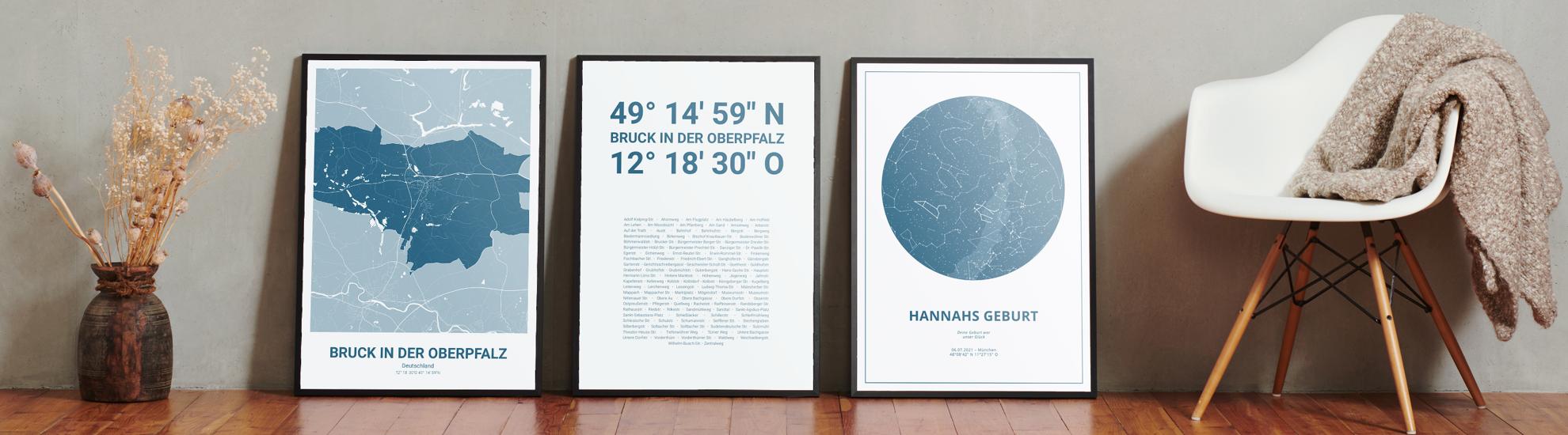 Wähle Farben und Layouts, die perfekt zu dir passen. Ob als klassische Karte in schwarz-weiß oder in modernen Farben. Bei Cartida kannst du ein Design in deinen Lieblingsfarben wählen. Erstelle eine Variante von Bruck in der Oberpfalz, die perfekt zu dir und deiner Wohnung passt.