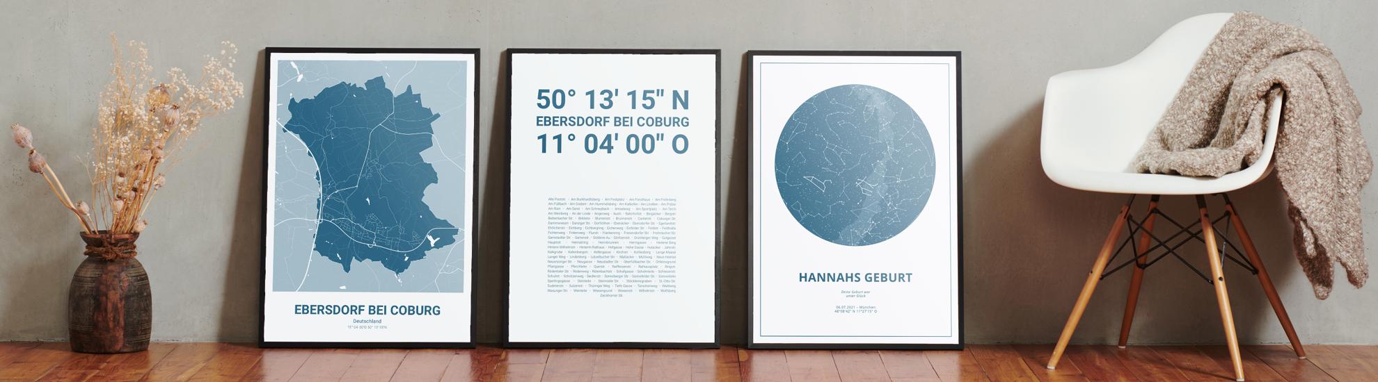 Wähle Farben und Layouts, die perfekt zu dir passen. Ob als klassische Karte in schwarz-weiß oder in modernen Farben. Bei Cartida kannst du ein Design in deinen Lieblingsfarben wählen. Erstelle eine Variante von Ebersdorf bei Coburg, die perfekt zu dir und deiner Wohnung passt.