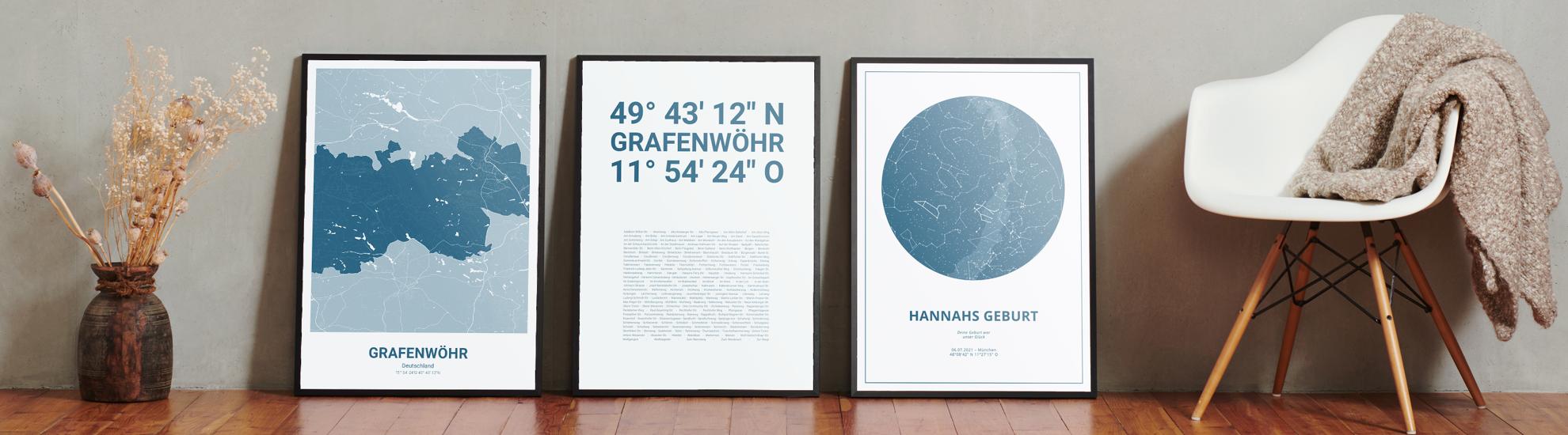 Wähle Farben und Layouts, die perfekt zu dir passen. Ob als klassische Karte in schwarz-weiß oder in modernen Farben. Bei Cartida kannst du ein Design in deinen Lieblingsfarben wählen. Erstelle eine Variante von Grafenwöhr, die perfekt zu dir und deiner Wohnung passt.
