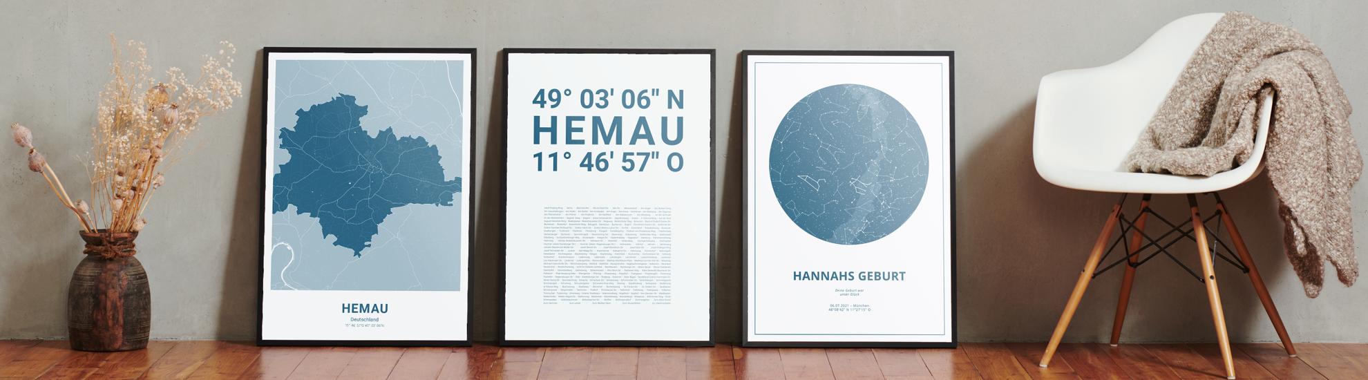 Wähle Farben und Layouts, die perfekt zu dir passen. Ob als klassische Karte in schwarz-weiß oder in modernen Farben. Bei Cartida kannst du ein Design in deinen Lieblingsfarben wählen. Erstelle eine Variante von Hemau, die perfekt zu dir und deiner Wohnung passt.