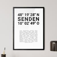 Zahlen, die die Welt bedeuten. Erstelle jetzt dein persönliches Koordinaten-Kunstwerk von deiner Lieblingsstadt. Entscheide selbst, ob Stadtteile, Straßen oder ganz eigene Texte abgedruckt werden. Perfekt als Geschenk zum Einzug oder für die eigenen vier Wände.