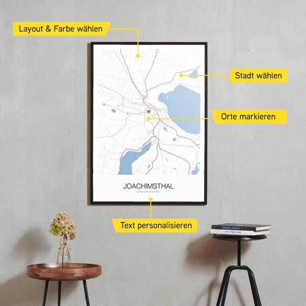 Wähle Farben und Layouts, die perfekt zu dir passen. Ob als klassische Karte in schwarz-weiß oder in modernen Farben. Bei Cartida kannst du ein Design in deinen Lieblingsfarben wählen. Erstelle eine Variante von Joachimsthal, die perfekt zu dir und deiner Wohnung passt.