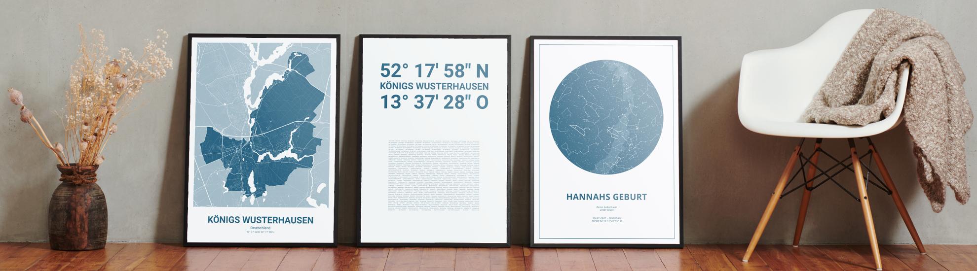 Wähle Farben und Layouts, die perfekt zu dir passen. Ob als klassische Karte in schwarz-weiß oder in modernen Farben. Bei Cartida kannst du ein Design in deinen Lieblingsfarben wählen. Erstelle eine Variante von Königs Wusterhausen, die perfekt zu dir und deiner Wohnung passt.