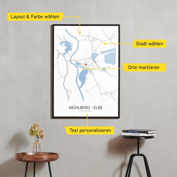 Wähle Farben und Layouts, die perfekt zu dir passen. Ob als klassische Karte in schwarz-weiß oder in modernen Farben. Bei Cartida kannst du ein Design in deinen Lieblingsfarben wählen. Erstelle eine Variante von Mühlberg - Elbe, die perfekt zu dir und deiner Wohnung passt.