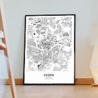 Bilder, die Geschichten erzählen über Reisen, Liebe und Erinnerungen. Wir bei Cartida haben deine Stadtkarte von Essen in Nordrhein-Westfalen, Deutschland. Dargestellt als Schwarzplan mit Gebäuden oder als Minimal City Map mit filigranen Straßennetz.