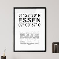 Zahlen, die die Welt bedeuten. Erstelle jetzt dein persönliches Koordinaten-Kunstwerk von deiner Lieblingsstadt. Entscheide selbst, ob Stadtteile, Straßen oder ganz eigene Texte abgedruckt werden. Perfekt als Geschenk zum Einzug oder für die eigenen vier Wände.