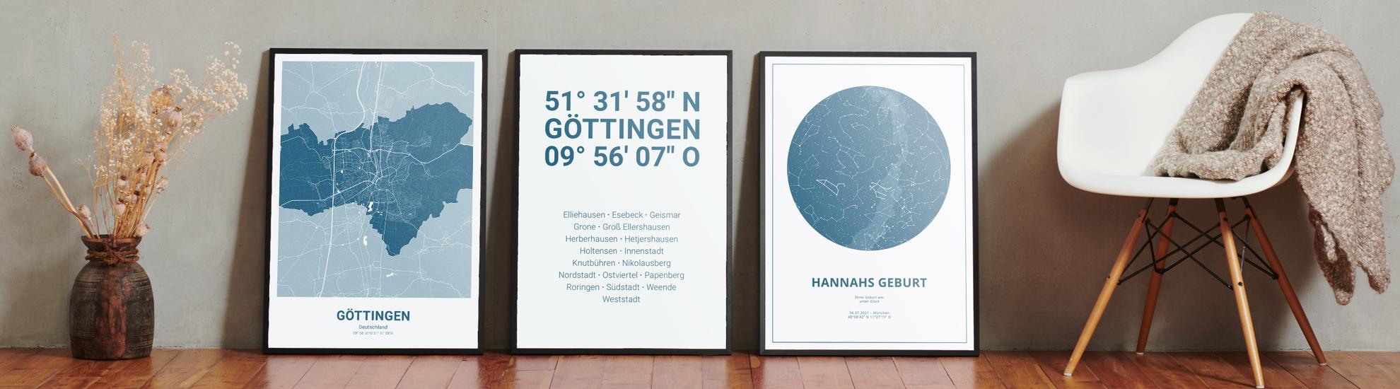 Wähle Farben und Layouts, die perfekt zu dir passen. Ob als klassische Karte in schwarz-weiß oder in modernen Farben. Bei Cartida kannst du ein Design in deinen Lieblingsfarben wählen. Erstelle eine Variante von Göttingen, die perfekt zu dir und deiner Wohnung passt.