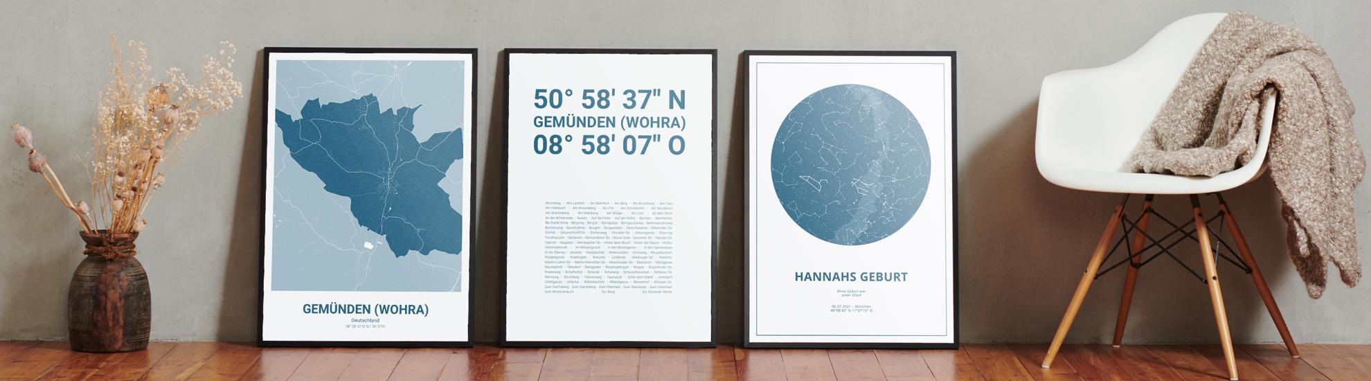 Wähle Farben und Layouts, die perfekt zu dir passen. Ob als klassische Karte in schwarz-weiß oder in modernen Farben. Bei Cartida kannst du ein Design in deinen Lieblingsfarben wählen. Erstelle eine Variante von Gemünden (Wohra), die perfekt zu dir und deiner Wohnung passt.