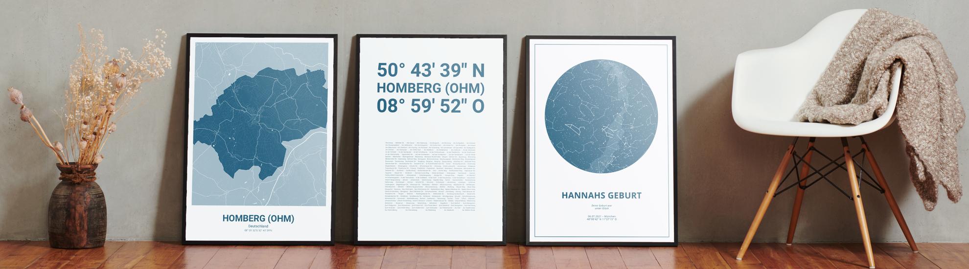Wähle Farben und Layouts, die perfekt zu dir passen. Ob als klassische Karte in schwarz-weiß oder in modernen Farben. Bei Cartida kannst du ein Design in deinen Lieblingsfarben wählen. Erstelle eine Variante von Homberg (Ohm), die perfekt zu dir und deiner Wohnung passt.