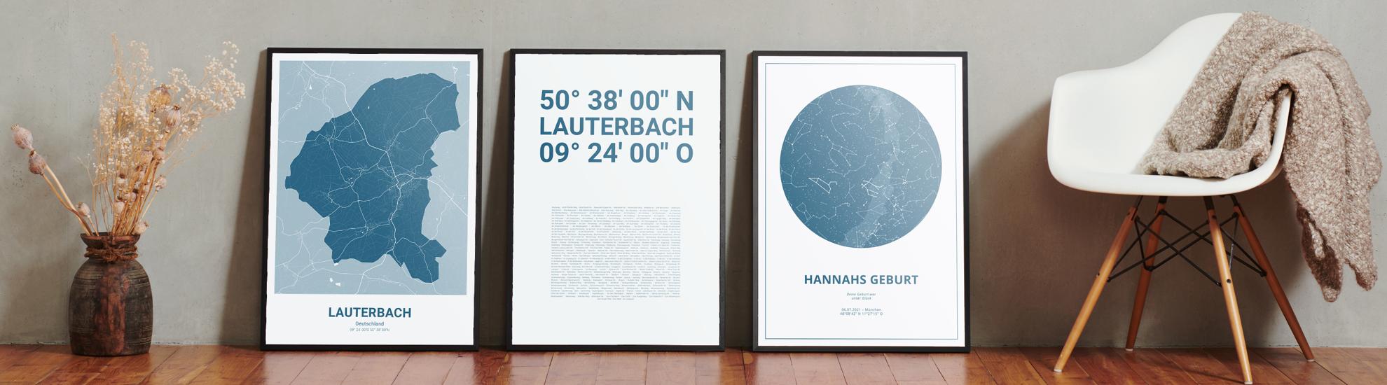 Wähle Farben und Layouts, die perfekt zu dir passen. Ob als klassische Karte in schwarz-weiß oder in modernen Farben. Bei Cartida kannst du ein Design in deinen Lieblingsfarben wählen. Erstelle eine Variante von Lauterbach, die perfekt zu dir und deiner Wohnung passt.