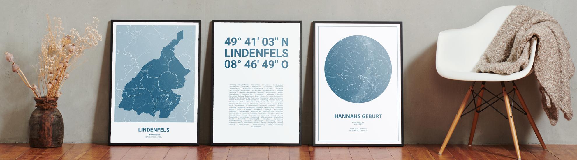 Wähle Farben und Layouts, die perfekt zu dir passen. Ob als klassische Karte in schwarz-weiß oder in modernen Farben. Bei Cartida kannst du ein Design in deinen Lieblingsfarben wählen. Erstelle eine Variante von Lindenfels, die perfekt zu dir und deiner Wohnung passt.
