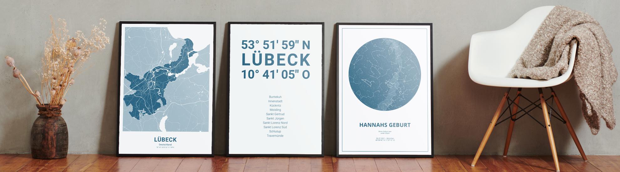 Wähle Farben und Layouts, die perfekt zu dir passen. Ob als klassische Karte in schwarz-weiß oder in modernen Farben. Bei Cartida kannst du ein Design in deinen Lieblingsfarben wählen. Erstelle eine Variante von Lübeck, die perfekt zu dir und deiner Wohnung passt.